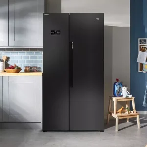 Beko HarvestFresh™ ASL1442VPZ Frost Free American Fridge Freezer – Black Steel – E Rated